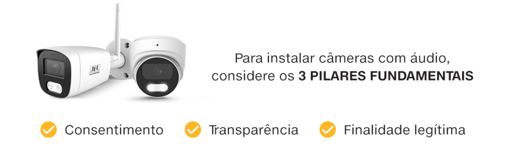 Recomendação técnica: Prefira instalar câmeras com áudio apenas em áreas estratégicas de segurança, desativando o microfone em locais de maior privacidade.